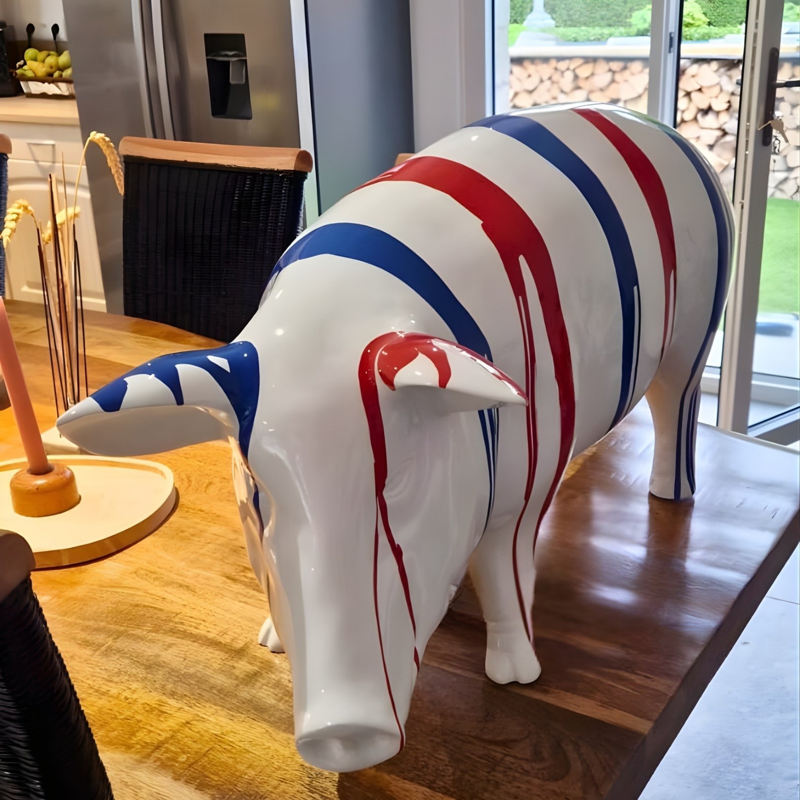 À la fois insolite et artistique, ce cochon bleu blanc rouge version trash devient rapidement la pièce maîtresse de votre décoration, idéale pour apporter humour, caractère et originalité à votre univers.